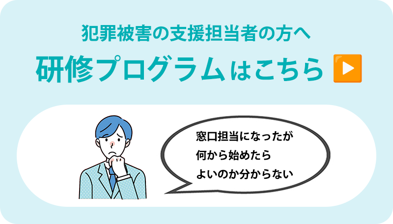 本研修プログラムが被害者支援を担当してはいるが、実際に被害者の対応をしたことがなかったり、二次被害を与えてしまうのではないか、などと不安を感じておられる支援者にとって、学ぶ場であり、支援について意見を交わす場であり、情報を共有する場になることを願っています。